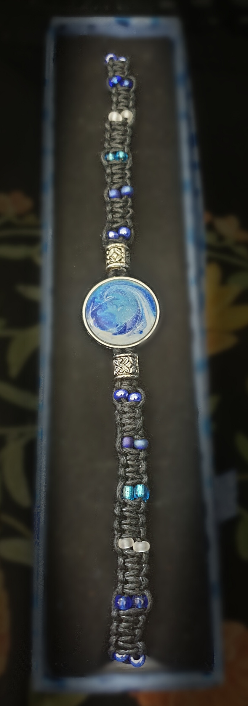 2x2cm - Unique Acrylic Artwork Pendant Choker with Macramé Chord and Beads (adjustable chain and clasp fastening 38-44cm circumference)